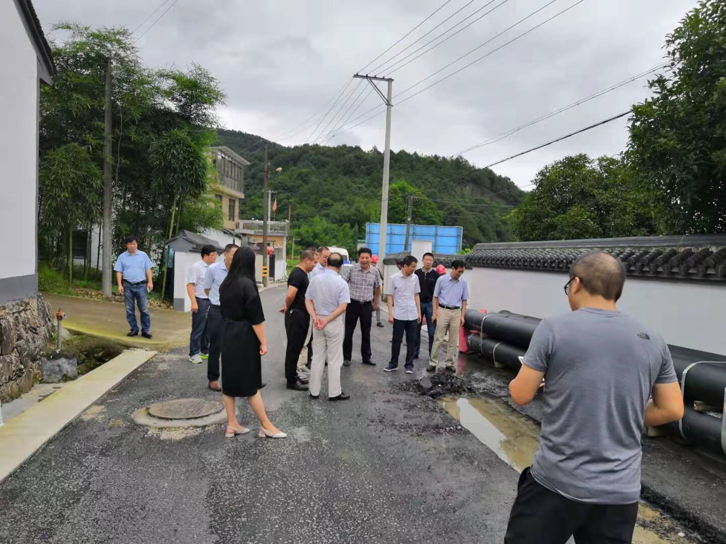 7月16日上午,區(qū)人大常委會副主任劉斌一行到王壇鎮(zhèn)孫岙村、平水鎮(zhèn)岔路口村實地督查柯橋農村飲用水達標提標加壓延伸工程施工現(xiàn)場。集團副總經理胡曉峰、公司總經理楊建東、副總經理曹志潮等陪同。