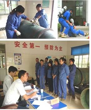 本次演練分空氣呼吸機(jī)正確佩戴使用和瓶身、針型閥應(yīng)急堵漏操作兩個項目進(jìn)行,參演人員在現(xiàn)場模擬出的緊張氛圍中都能井然有序、有條不紊地完成全套動作。通過本次液氯演練,提高了值班員對突發(fā)事故的分析應(yīng)對處理能力,取得了較好的效果。