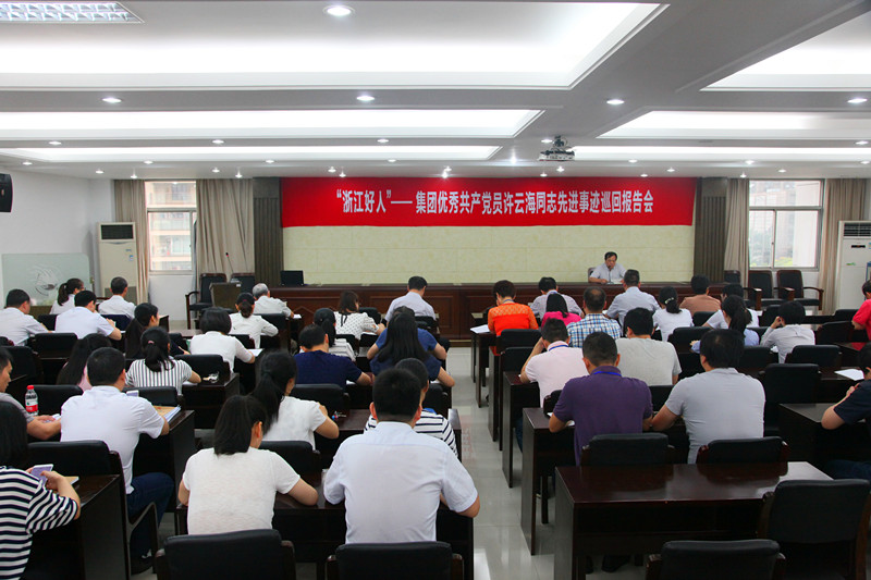 今年2月份,集團公司下屬排水公司許云海同志被浙江省文明辦評為敬業奉獻“浙江好人為扎實推進“兩學一做”學習教育常態化制度化,充分發揮先進典型的示范作用,激勵全體干部職工在推動中心工作、履行崗位職責中奮力創先爭優,集團公司組織在全系統內開展“浙江好人”——集團優秀共產黨員許云海同志先進事跡巡回報告會6月27日,首場報告會在集團公司五樓會議室舉行。集團領導班子成員、集團財務總監、集團機關全體干部職工參加。